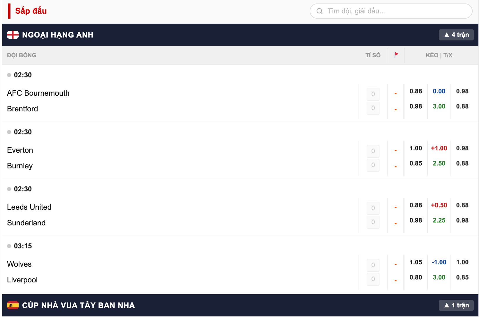 Tìm kiếm trận đấu nhanh chóng